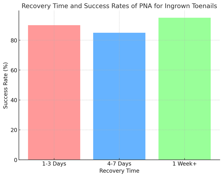 Here’s a bar graph showing the recovery time and success rates of PNA for ingrown toenails:
